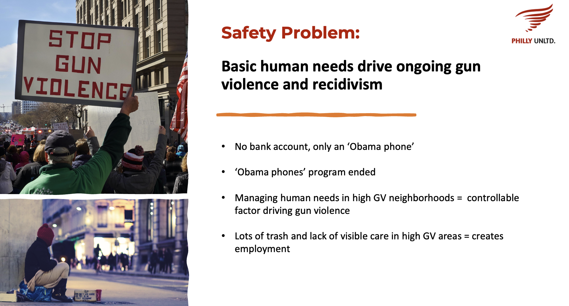 A non-profit dedicated to addressing gun violence reduction in Philadelphia by providing food, shelter, safety, and a community voice to those suffering the most in our city.